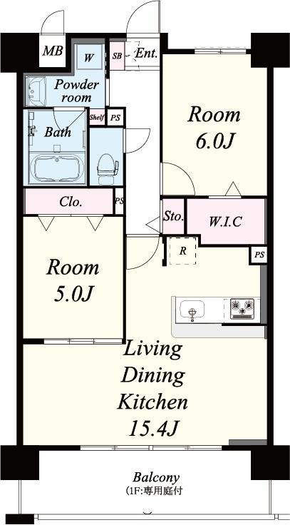 LDK(15.4畳) 洋室(6畳) 洋室(5畳)