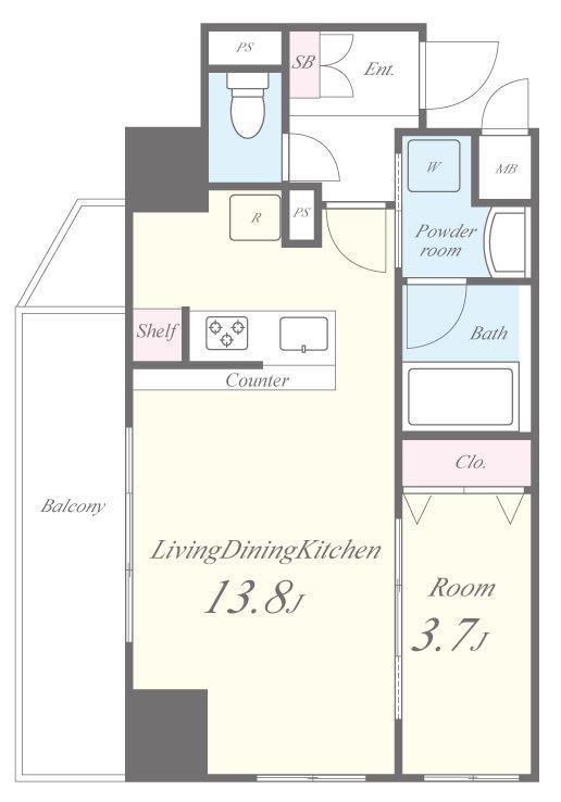 洋室(3.7畳) LDK(13.8畳)