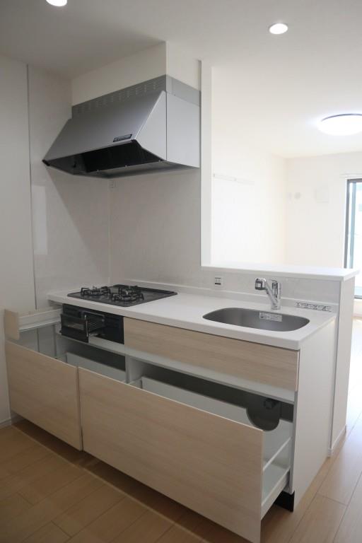 敷地内ゴミ置き場,システムキッチン,対面式キッチン,カウンターキッチン,ガスコンロ設置済,3口以上コンロ,グリル,ガスキッチン,バス・トイレ別,バス有,追い焚き風呂,浴室乾燥,脱衣所,浴室未使用,シャワー,トイレ有,温水洗浄便座,トイレ未使用,洗面台,洗面所にドア,三面鏡付洗面化粧台,シャワー付洗面台,エアコン,BS,ネット使用料不要,TVインターホン,給湯,ガス給湯,3点給湯,24時間換気システム,複層ガラス,洗濯機置場,クローゼット,シューズボックス,ガス(都市ガス),下水(公共下水),水道(メーター),電気