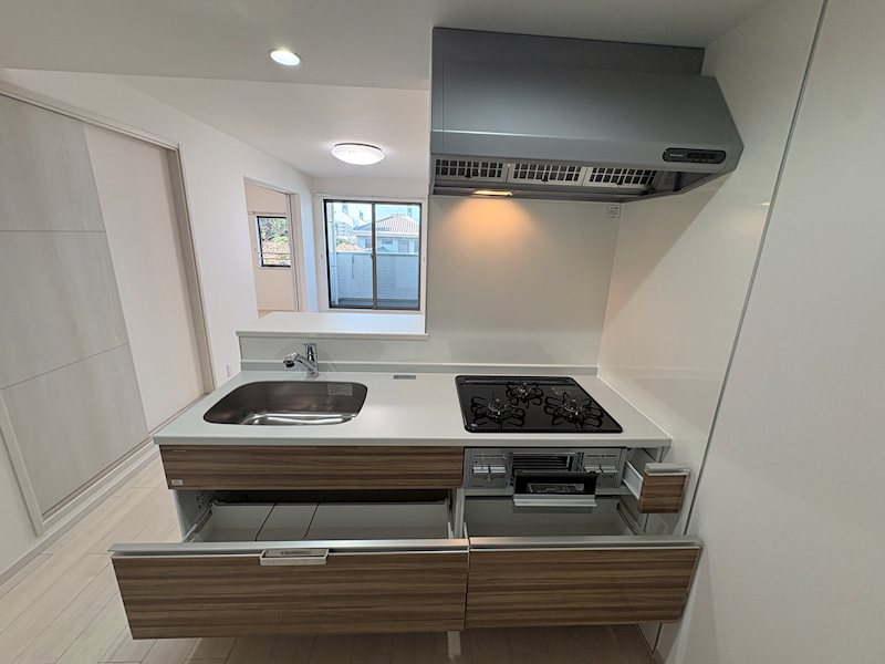 宅配BOX,システムキッチン,カウンターキッチン,ガスコンロ設置済,3口以上コンロ,グリル,バス・トイレ別,追い焚き風呂,浴室乾燥,シャワー,温水洗浄便座,洗面台,洗面所独立,エアコン,BS,CS,インターネット専用線配線済み,ネット使用料不要,TVインターホン,ガス給湯,3点給湯,24時間換気システム,洗濯機置場,ウォークインクローゼット,シューズボックス,収納有,ガス(都市ガス)