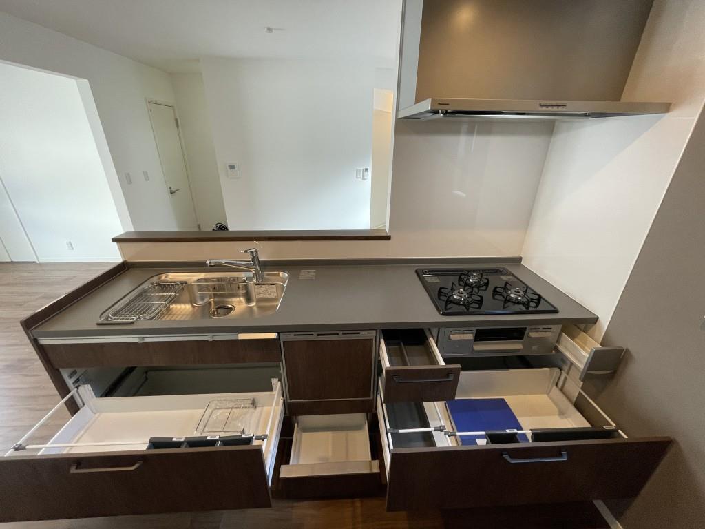 宅配BOX,システムキッチン,3口以上コンロ,グリル,食器洗浄乾燥機,バス・トイレ別,追い焚き風呂,脱衣所,シャワー,トイレ有,温水洗浄便座,洗面台,洗面所独立,エアコン3台,全室照明付き,TVインターホン,24時間換気システム,電動シャッター,クローゼット,ウォークインクローゼット,シューズボックス,物置,収納有,ガス(都市ガス)